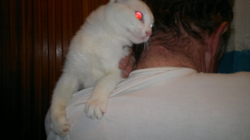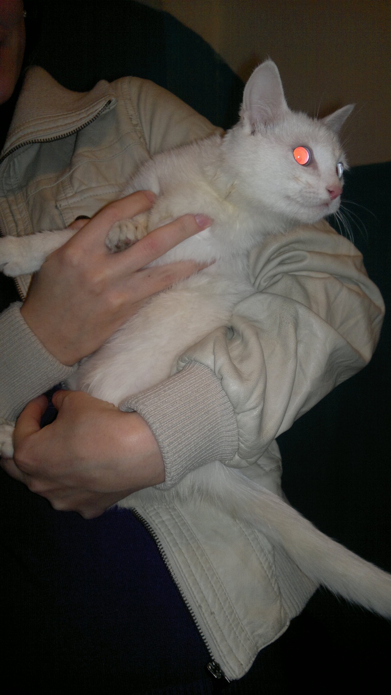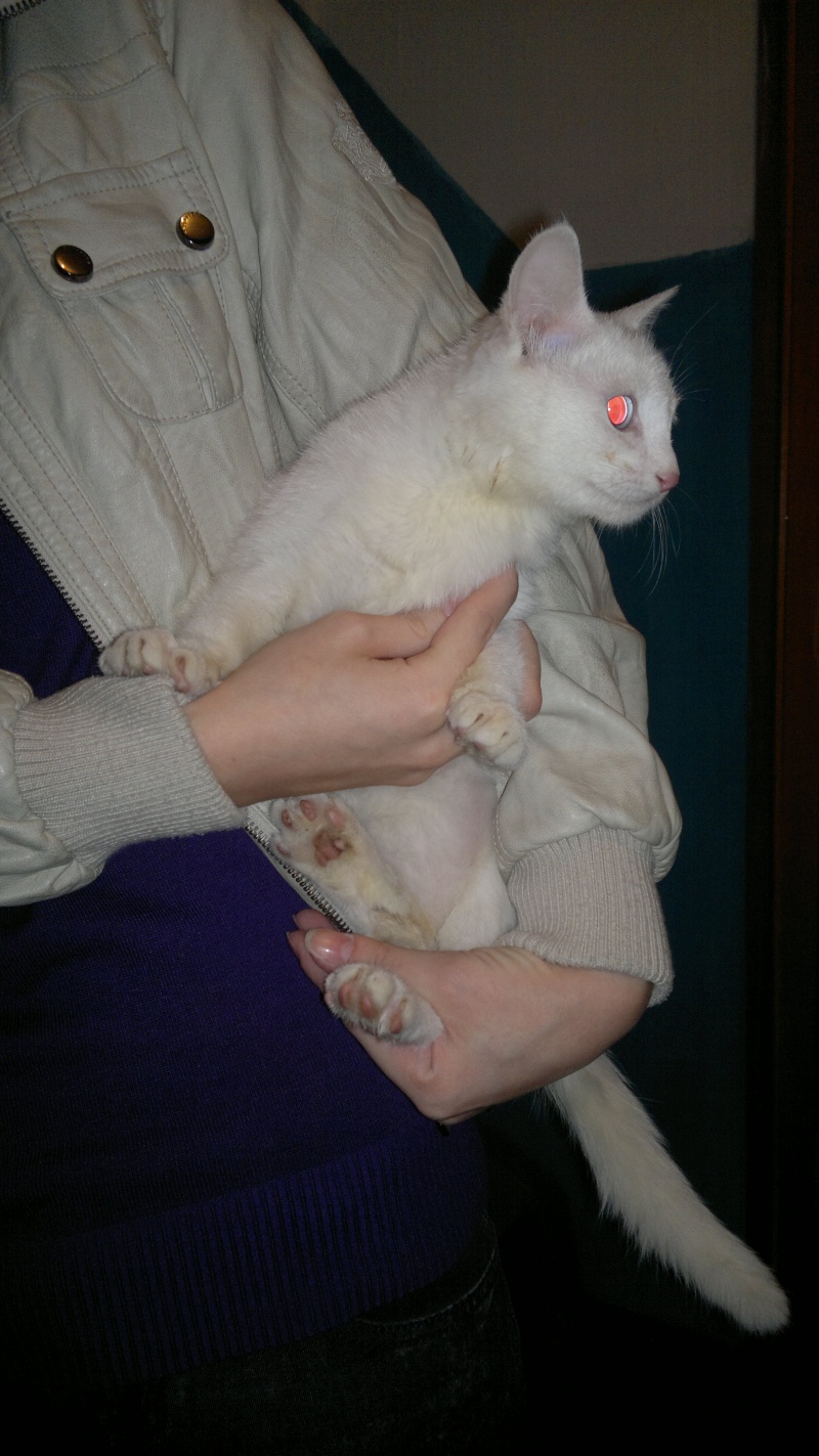 ). Дверь открыл сын, вышел в подъезд разговаривать. Так как к нему часто приходят с претензиями, разборками с выселением и проч., он неохотно говорил о количестве кошек и интересовался, кто "нас натравил". Когда спрашивали, разрешит ли стерилизовать котов и кошек и помочь пристроить маленьких, то соглашался, то говорил, что сам справится. Есть вероятность, что он вообще в следующий раз дверь не откроет.Тем не менее, сказал, что из взрослых у него 4 кота и 2 кошки. Белых котят вынес в подъезд пофотографировать.