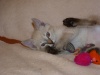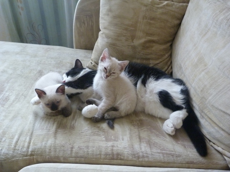 В итоге мы имеем 2 карапуза, мальчик и девочка, примерно 1,5 месяца. Отмыты, накормлены.