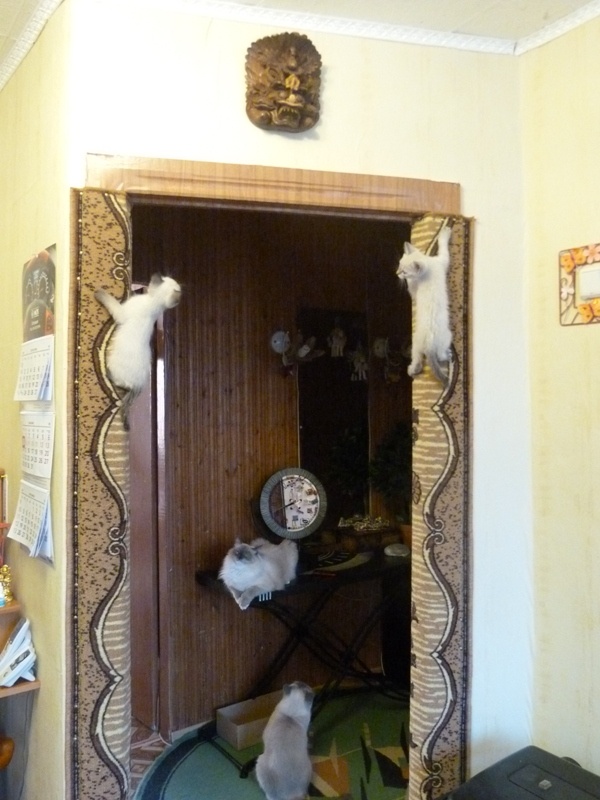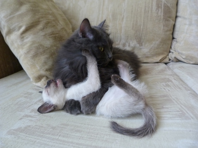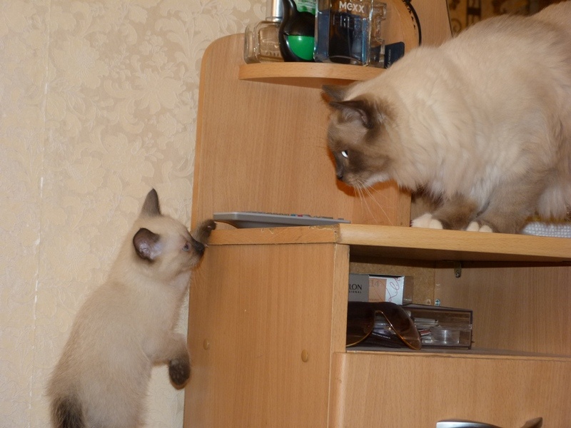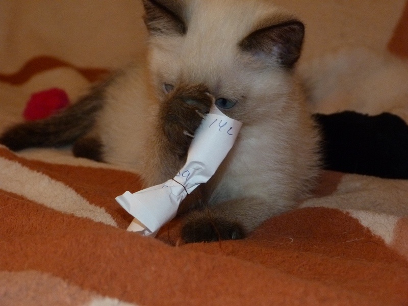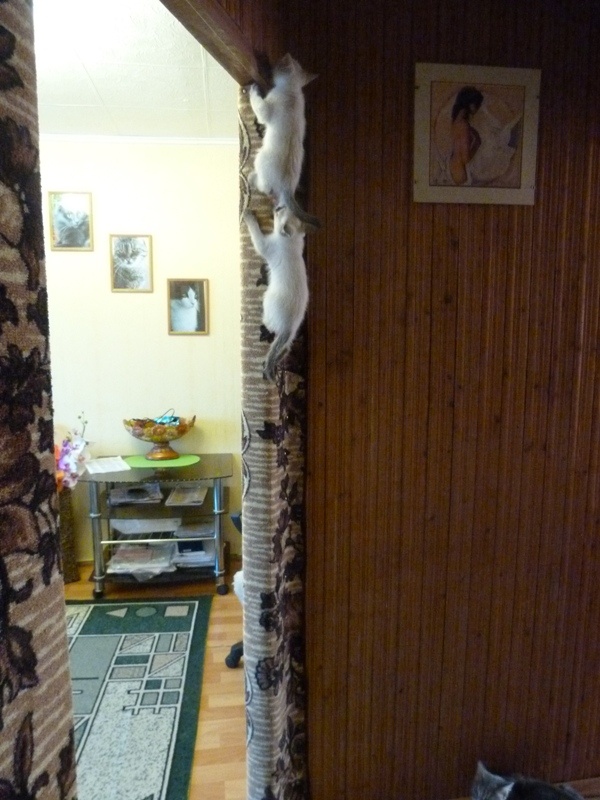 схватила и мужу отдала, пока я сооружала шведский стол для кошек, муж сидел и грел малышей.