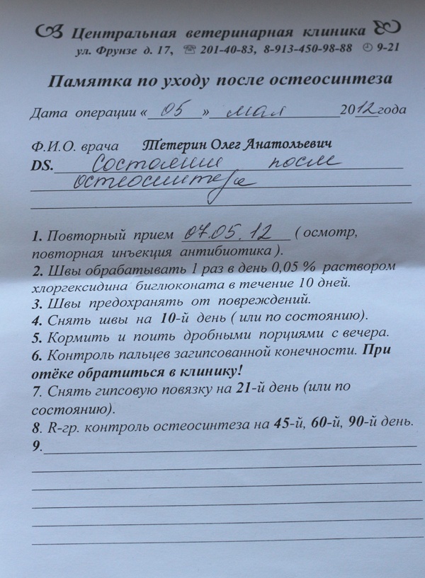 В какой клинике оперируетесь? Что-то дороговато, мне кажется. А почему оперируют в 2 этапа?В Центральной ветеринарной клинике, хирург Тетерин О.А. Сумму в 7 т.р. нам сказали сегодня, предварительно. Завтра я позвоню и узнаю точно, у самого лечащего врача.