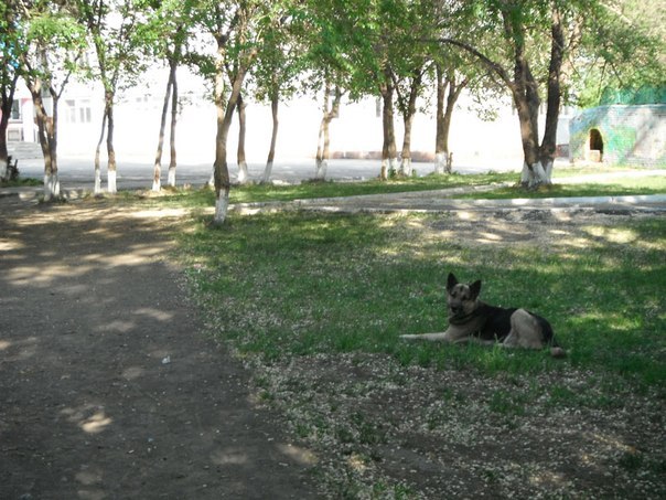 Это пёс, которого чудом удалось забрать из "плохого" места. Пёс несколько дней сидел у школы, на одном из сайтов написали его точное местонахождение, ДХ сразу разместили информацию о собаке на своём сайте, а добрые бабушки сдали собаку в "приют"