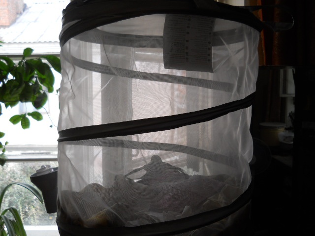 на случай, если насекомых не наловим. Вчера вернулись поздно, птаха крепко уснула в дороге, мне было жалко её будить и я пропустила вечернее кормление и массаж лап с Троксевазином. Утром я проснулась от грохота. Два кота, спавшие на подоконнике под накомарником с птичкой, шарахнулись от окна, снося всё на своём пути. Я заглянула в накомарник и с ужасом обнаружила, что птички там нет