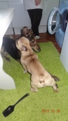- освоили команды рядом (не тянет), сидеть, лежать,фу (из пасти выпадывает все что там было))))))))