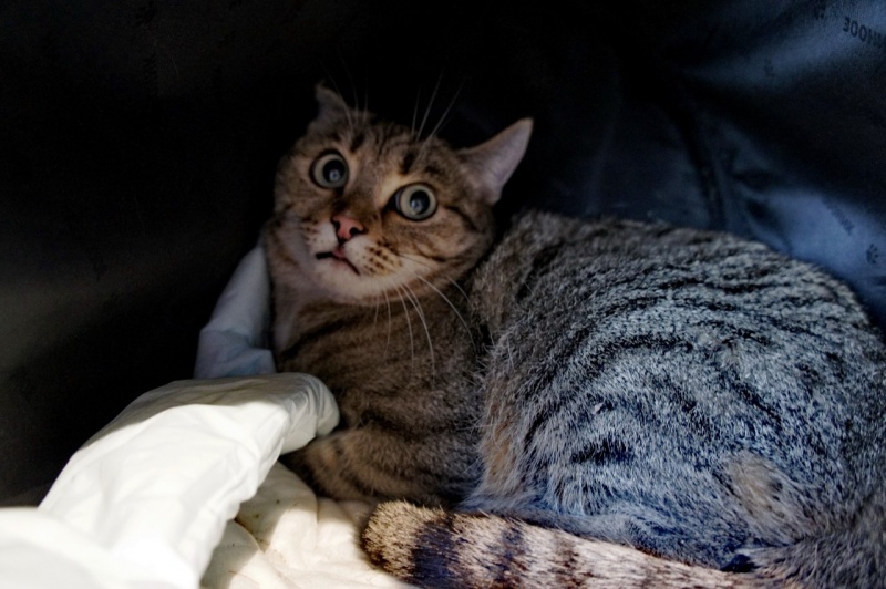 Кошка была в глубоком шоке. Вот так, с такой мордой сидела первые сутки, не двигалась вообще, не ела и не пила, кормили насильно.