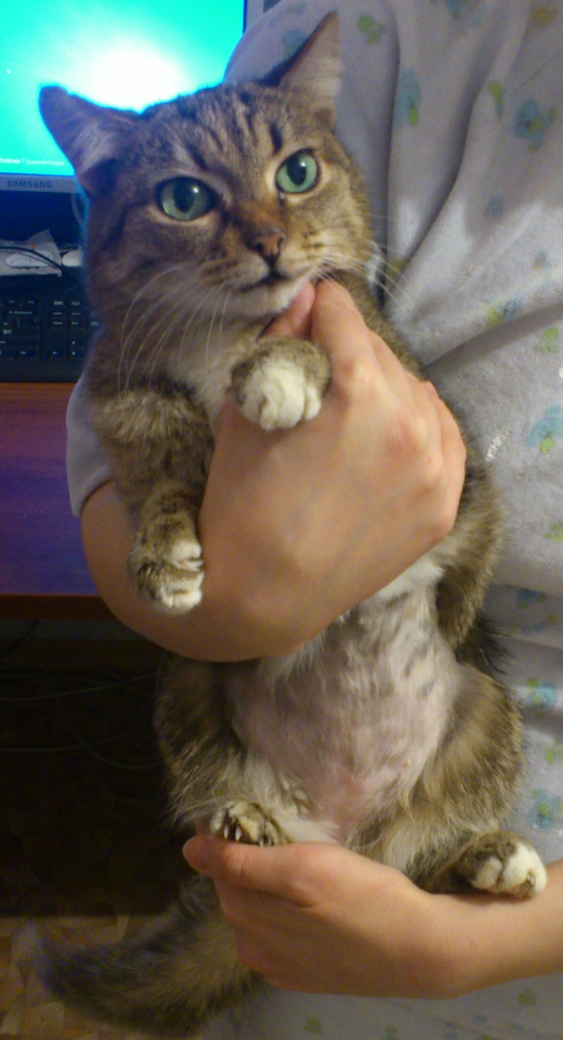 И тут выяснилось, что это не котенок, а взрослая кошка. Весит она 1,5 кг. Врач ставит возраст от 2-х лет. Правда, это по состоянию зубов. Одного клыка нет, второй выбит. Но это могли пнуть по мордочке. Ну и общее состояние кошки врачу не понравилось. Говорит, что животное тяжело дышит, слизистые бледные, почти белые, а должны быть розовые. Предлагает обследовать. Оставила кошку на стационар, это 600р в сутки, я такую сумму долго не потяну. Плюс как раз выяснилось, что зарплату в этом месяце задерживают на неопределеннное время. Ну и туда, где была предварительная договоренность, я отвезти не могу, т.к. договаривалась на котенка, на короткий отрезок времени, а не на взрослое животное. И у человека есть свои непривитые животные, он не может рисковать их здоровьем.
