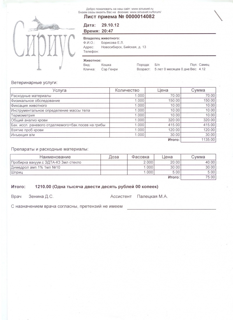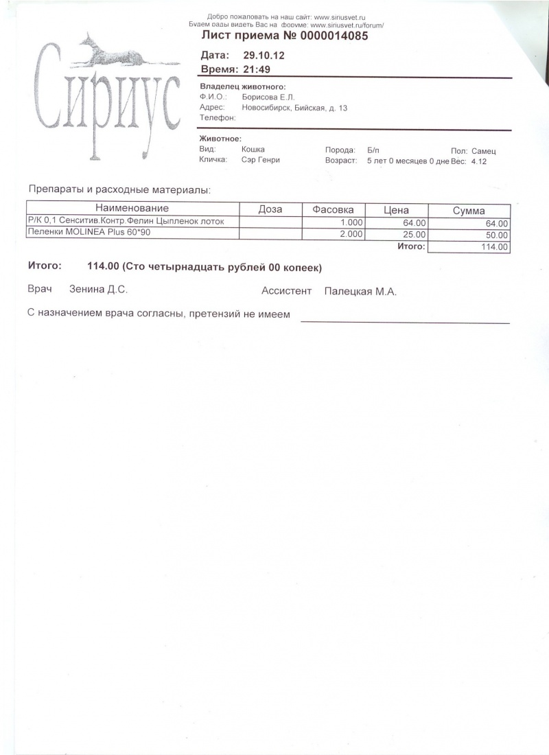 ... - в понедельник я повезу анализ шёрстки в баклабораторию на Автовокзал.Если это на Серебреннековскую, 5, то в понедельник они не работают (вчера узнавала).
