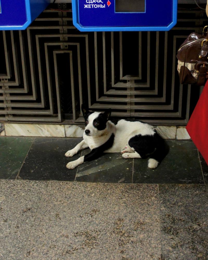 может быть в стрессе простоПри мне в метро вяло съел сосиску, которую ему дали добрые прохожие - либо не голодный, либо от стресса аппетита нет, но он на улице недавно, т.к. не худой совсем.
