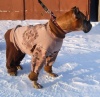 Это Ненси в домашней "пижаме", Так теплее.Собачке кушать не удобно, это видно, тарелка сильно низко для неё стоит. Лапы расставляет и шею низко нагибает.