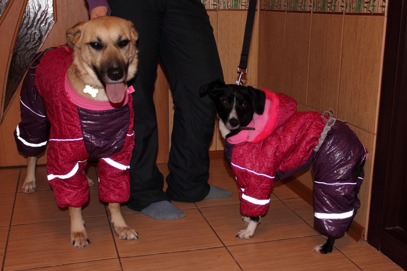Маш, ну прям красотки в комбезах! Прям радостно смотреть на собаньку маленькую, была такая жалкая, худенькая на улице одна. Молодцы! Девоньке хороших и добрых "родителей"! А большенькая твоя? На неё искала комбез?