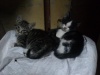 Один котенок полосатый, красивый, двое простых -черно-белый и черный. Фото с телефона выложу вечером дома.