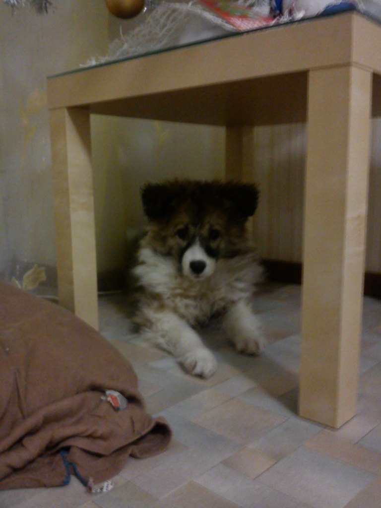 О щенке: щенок подросший, пушистая девочка Нэлли. Сейчас на передержке ведет себя тихо, испуганно, заперта на кухне, так и нужно будет в закрытом помещении держать. Ест корм (кормом обеспечим) и ходит на газетку (приучена к ней), грызет мячики свои и молчит.
