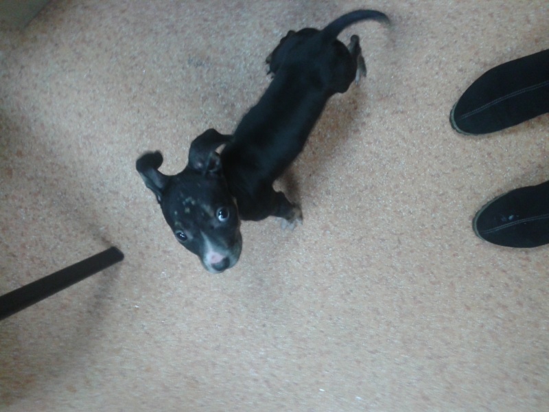 Сегодня утром ничего не предвещало беды: Еду на работу и думаю толи на Студенческой выйти, толи на пл.Маркса и дворами пройти, в последний момент на свою голову вышла на Маркса и пошла дворами, подхожу к Выставочной 26 и слышу вопль, визг, ну думаю щенка где то убивают и вижу картину, маленький щенок которое отпинывают от машин мужчины, она бедная орет дурниной, я руку протягиваю, а она в землю вжалась и орет, я думала сначала что у нее все кости переломаны, а она от страха, судя по следам не первый час мечется по двору, имеем щенка фенотип стафов, я не разбираюсь в этой породе, возраст думаю месяца 2 есть, тощая, замерзшая, у нее даже уши во льду, на голове коросты, кончик хвоста тоже в коростах, толи грязь, толи что, оставить там не смогла, сейчас на работе у меня, но что с ней делать дальше я не знаю, у меня денег нет даже в клинику ее сносить, куда ее девать, дома 2 кошки и собака, Бася ее порвет, денег на передержку нет