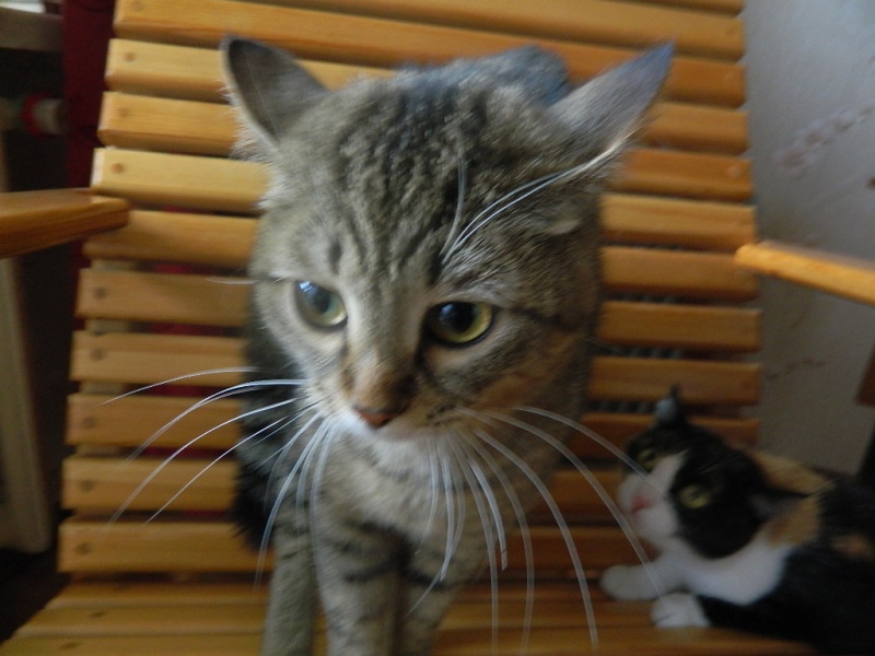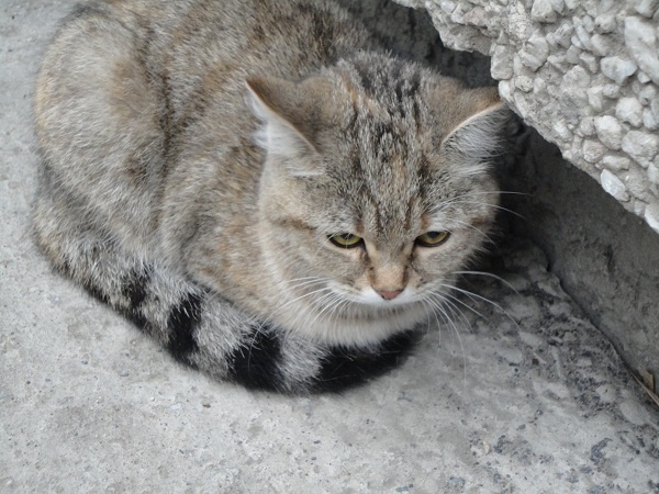 Предистория: утром обнаружена у подвальной дырки, сидела "ежом" и тряслась. Недалеко был разорванный собаками котик и в самой подвальной дырке еще одна незнакомая мне кото-морда. Сразу подумала, что подкинули троих, чертовы людишки...