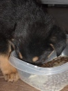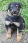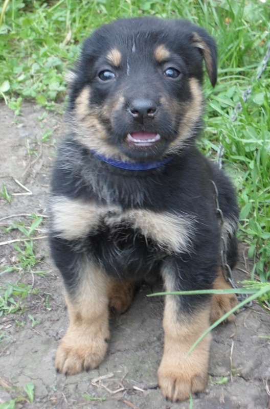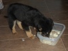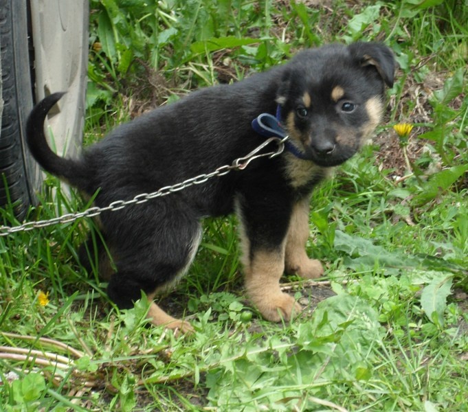 Сейчас щенок веселый, игривый, забавный, общительный, смышленый. осмотрен врачем, взвешен (1, 6 кг), уколот Гисканом. Ждет двух недель, чтобы проглистогониться и далее привиться. А тем временем пытается дрессировать меня. Желая общения и не желая сидеть в клетке, начинает дурниной орать. Сначала я терпела, потом начала на него шипеть, потом он получил по носу и замолчал. Очень быстро сообразил, что через истерику можно получить не только блага, но и огрести дюлей. Не хочет ходить дома в туалет (спасибо его маме-суке, которая его приучила), конечно если вариантов нет, то сходит, но когда хочет в туалет начинает блажить не по-детски. Покормила его вечером и пошла спать, ночь молчал. Утром в клетке была только крохотная лужица, покормила еще и сразу унесла на улицу. Только поставила на землю, он тут же сделал все дела и начал играть. Вообщем собака отличная (а я его именно так и воспринимаю, т.к. щенки имеют свойство расти) и при грамотном воспитании имет шанс стать культурным псом.