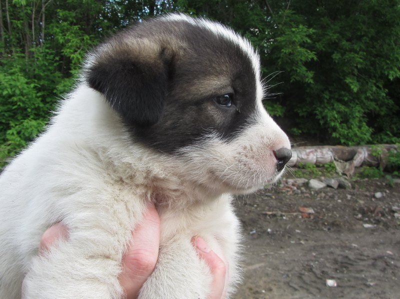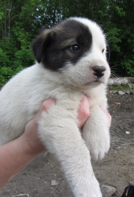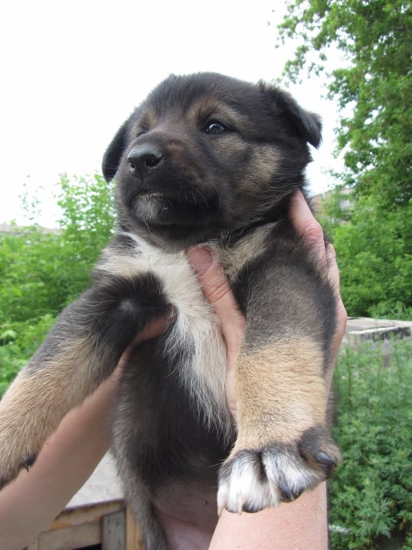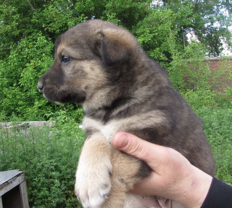 Щенки вырастут в крупных собак-55-60 см. в холке.Они уже сейчас весят около 3 кг.Там 3 суки и 3 кобеля.