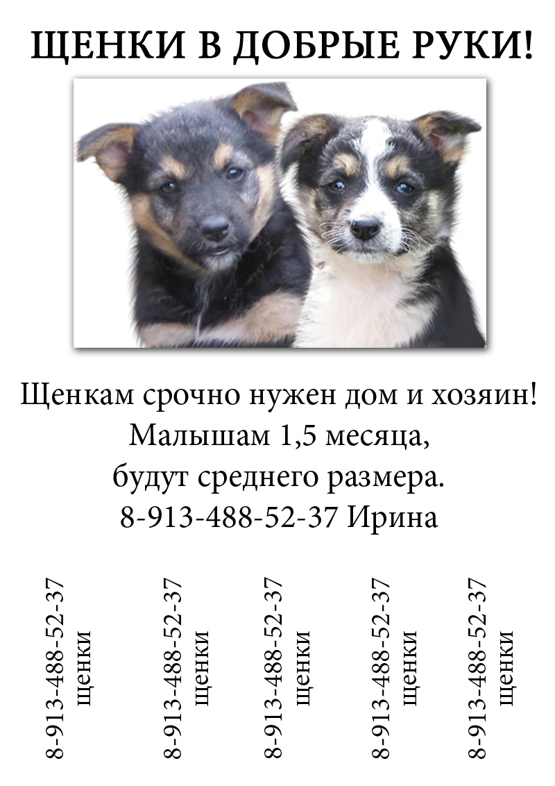 Объявления напечатаю, расклею по частному сектору, кормить буду, могу проглистогонить, чуть позже простерилизую мамуНо печатных объявлений мало, нужно ещё постараться подать объявления как можно в большее кол-во СМИ. Вот тут есть список. А вот тут много полезной информации в помощь по пристрою. Удачи!