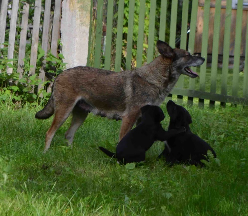 Вообщем, месяц назад в нашем дачном обществе появилась течная сучка и молодой кобель (видимо ее сынок и к тому же диковатый). Все думали, что побегает и убежит и что живет в деревне в соседней, но.......она осталась и родила 8 щенков
