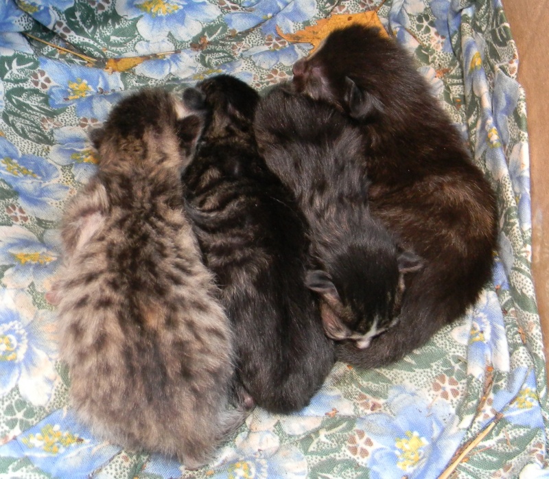 Очень ответственная девушка (на форуме Настя (tenakotena)), которая много кошек спасла, только что нашла в лесу Академгородка кошку с 4-мя только что родившимися котятами!