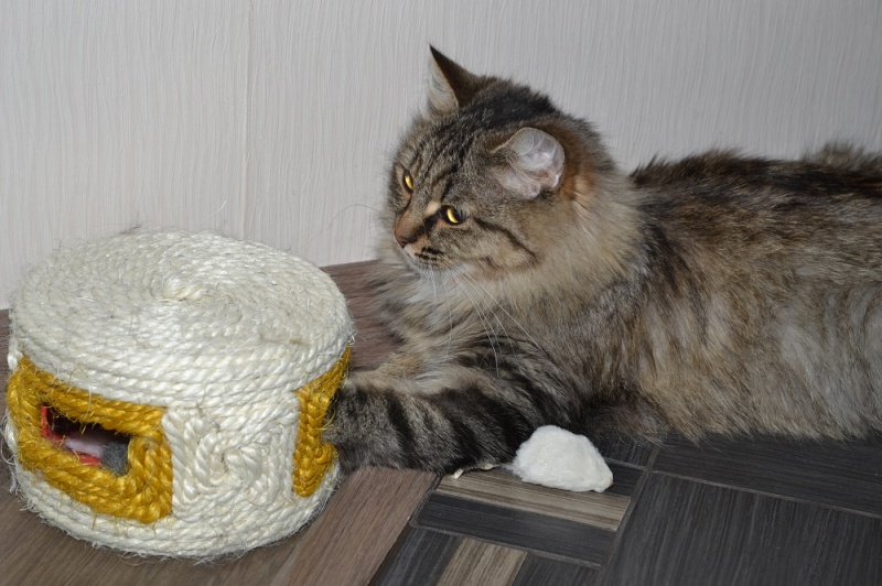 А сейчас сказывается решающее значение веса. Первой кошка никогда не лезет.