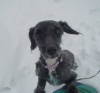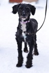 Нет, у собаньки черная шерсть, тока на голове все свалено. По размеру она до колена и худенькая, лапки длинные.