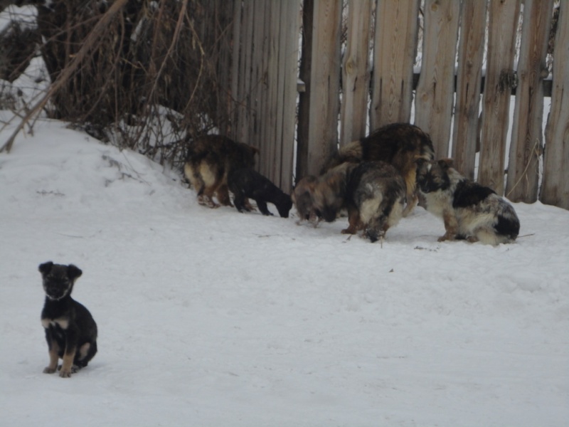 Имеем собачью семейку, штук 5-7. Все причем почти одинаковые - мелкие собачки примерно сантиметров 30. Забавно, как колония карликов )). У них нора под кучей досок каких то , в норе пищат щенки, подозреваю - новорожденные, т к даже не вышли. Меня поразили 3 щенка, возраст примерно 1.5 месяца. Они как....бухенвальдики