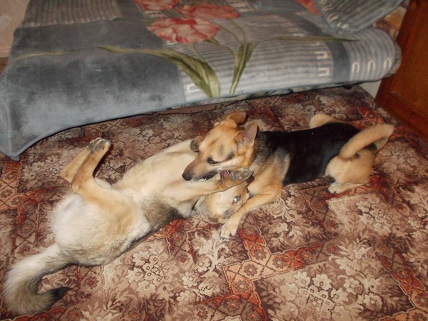 • Спасибо Вам огромное за понимание и поддержку. По поводу воспитания собак могу сказать, что один самый старший 5 лет Ян- очень умный и воспитанный пёс, не развязанный. И на улице на чужих течьных собак не кидается, а вот как поведёт себя с Евой: гарантировать не чего не могу. Второй: Жан 2,5 года- воспитания не какого, за течьной сукой может удрать и хоть заорись. Посылаю Яна, тот его догоняет и начинается драка. Подбегаю, разнимаю, Жана на поводок и силой тяну домой, а иначе не как, иначе убежит, ищи-свищи. Даже не знаю вернётся или нет. Как только в округе кто то затечьковал- Жана с поводка не спускаю. За его воспитание не в ответе: взяла 17 марта этого года уже взрослым, конечно он стал гораздо спокойнее и послушнее, но до Яна ему далеко. Третий Ен 7-8 месяцев, но уже заскакивает и своего не упустит. Воспитываю, слушается, но отвернусь сделает по своему. Сук у меня не когда не было, опыта в этом деле- нет. Это фото Яна и Жана. Тот что темнее, уши прижал- ЯН.
