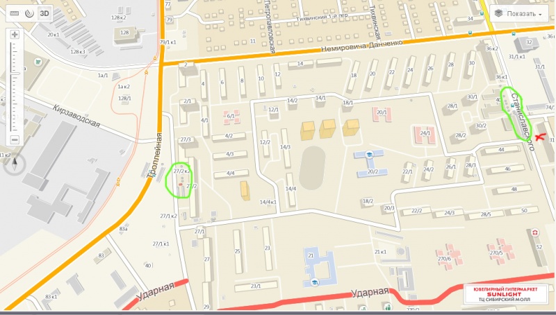 Лена, там частный сектор большой за Ударной, не представляю, как вы ездите там (если там были), на Станиславском жилмассиве развернуться внутри массива негде практически, трудно, мы сына одно время завозили в школу на массив с Юго Западного. На остановке Кирзавод есть микрорынок, туда может прийти, на Станиславском жилмассиве (чуть дальше вниз, к Евровету, напротив него) есть микрорынок, тоже возможно.. К Континенту может прийти , если дорогу эту сумасшедшую перейдёт, как я её ненавижу, эту дорогу . В прошлом году к Континенту пришла с китайской стены (длинный дом у микрорынка) на Кирзаводе и болталась там около недели далматинка.. так что возможно. Красным крестиком отметила Евровет. Зелёным - микрорынки