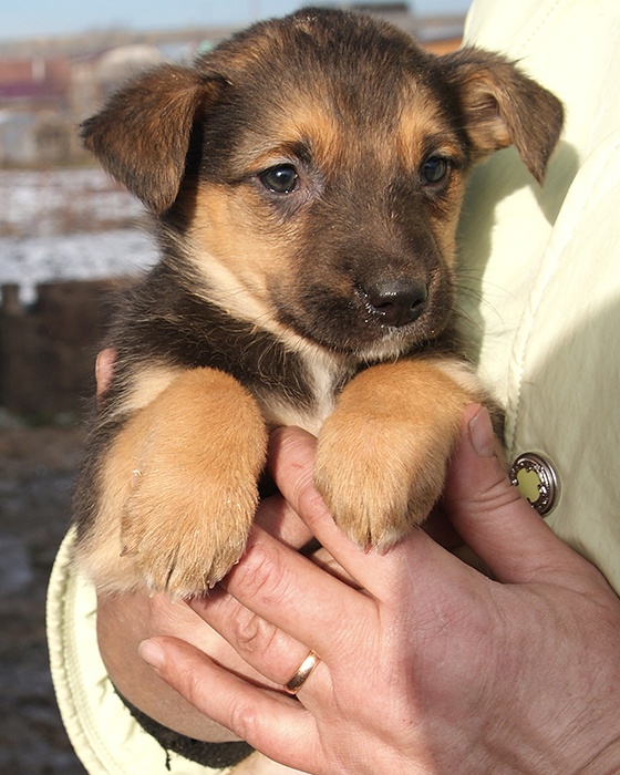 Вечером встретились с мужчиной и он сказал, что так как щенок писился и сделал затяжку на ковровой дорожке , они ее отдали на пром. предприятие в Октябрьском районе на охрану почти сразу ,через неделю.