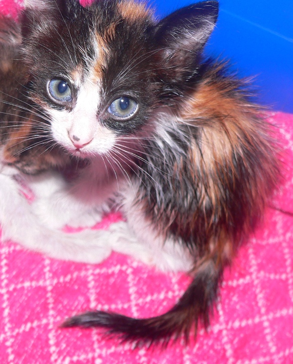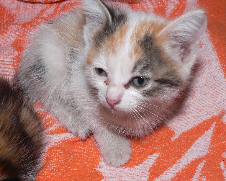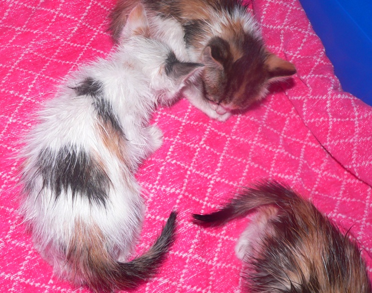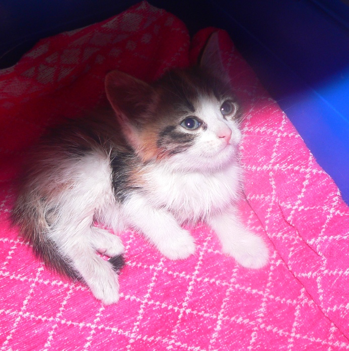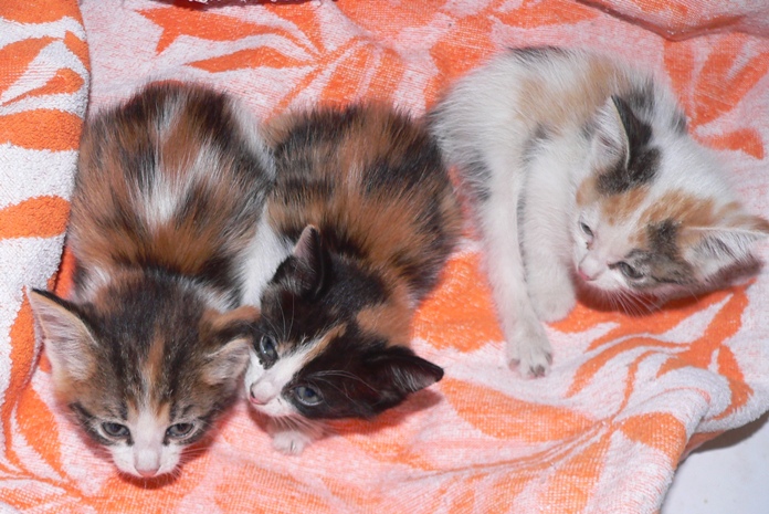 Маленькие (месяц или чуть больше), грязные (даже блохи были), трехцветного окраса. Понятно, что женского пола. Понятно, что брать некуда, но уж больно котята маленькие, и ночи сейчас холодные.