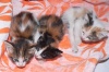 Собственно котята. Условно (цвету шерсти на голове) их назвали Брюнетка, Шатенка и Блондинка: у Брю самая темная голова и так далее.