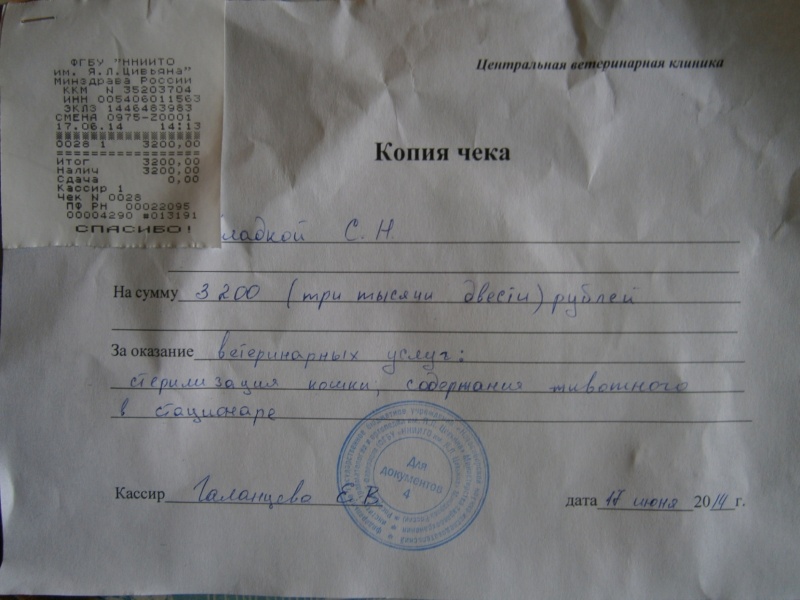 Кошку решила оставить на 2 дня в стационаре, т.к. дома у меня не привитые коты. Спустя 2 дня, если кошка будет в норме, решено ее стерилизовать.