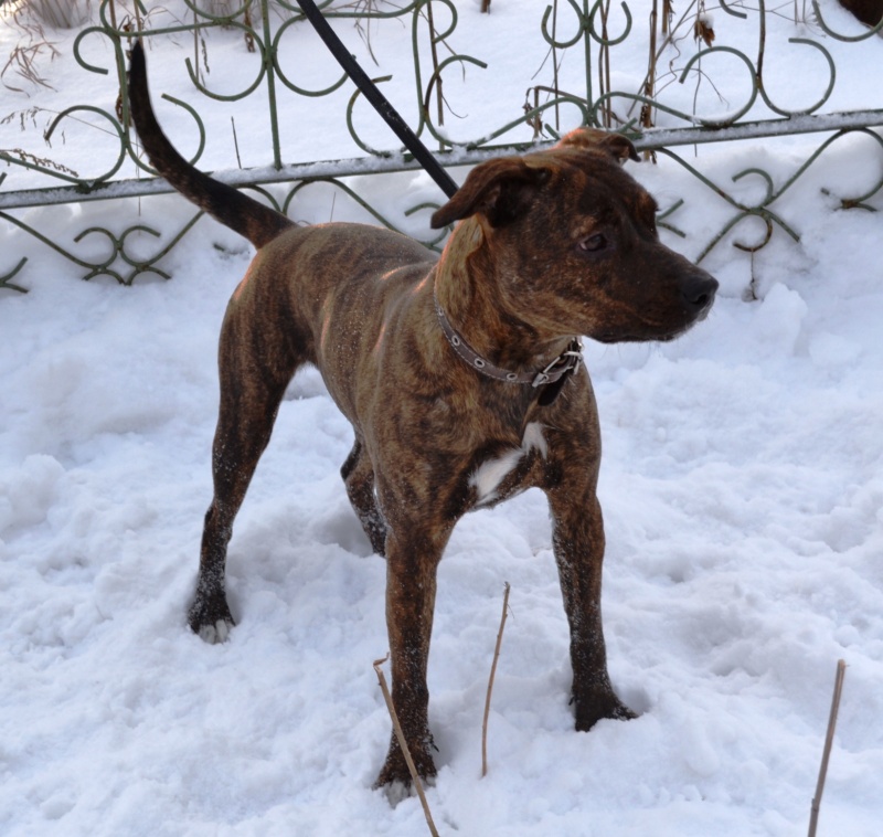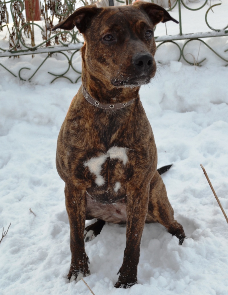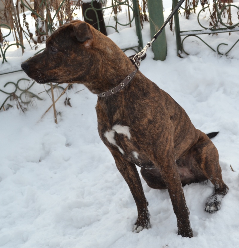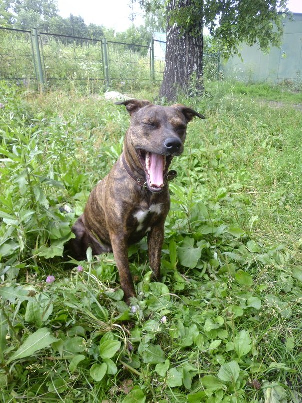 Пообщались с породниками, собака не помесь, самая настоящая питочка, просто не клубная. Очень спокойная. без агрессии на людей и животных( даже котов не трогает) , очень любвиобильная.