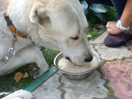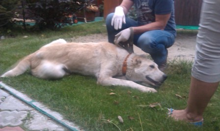 Всем доброго времени суток! Прошу финансовой помощи в оплате лечения для среднеазиатской овчарки (девочка 1,5 года), которую забрали с улицы 13 августа в ослабленном, истощенном состоянии. За неделю до этого она была замечена скитающейся по улице, но забрать на тот момент возможности не было. Как только появилась возможность сразу поехали ее искать. Искать ее долго не пришлось, она лежала на траве, в таком ослабленном состоянии, что еле поднимала голову и отказывалась от еды, еле подняли ее на ноги, при хотьбе хромала на переднюю лапку (похоже на сильный ушиб). Сразу отвезли на первичный осмотр в вет.клинику (взяли все необходимые анализы и сделали узи), там назначили неотложный курс общеукрепляющего, иммуностимулирующего лечения (уколы, таблетки). По результатам анализов особых проблем не было обнаружено, предварительный диагноз энтероколит не подтвердился, просто у собаки сильное истощение, на фоне этого было выявлено незначительное изменение печени, после чего нам выписали таблетки, стимулирующие работу печени, а так же курс лечения для дегельминтизации. Сейчас Умка (так мы ее назвали за сходство с белой медведицей и удивительный интеллект , она такая умничка) находится на передержке, чувствует себя гораздо лучше, аппетит отменный, теперь главное нарастить недостающую массу тела. В конце августа, после лечения планируется проведение вакцинации. Очень хочется вернуть собаку в нормальное физическое состояние и увидеть эту чудесную красавицу здоровой и счастливой. После того как поставим собаку на ноги будем искать ей самого любящего и ответственного хозяина. Так как выяснилось, что собака была на свободном выгуле, ее отпускали с территории одного предприятия, которое она охраняла, на поверку оказалось что ею ни кто не занимался, толком не кормили, а выпускали днем погулять без ошейника, она скиталась, попрошайничала у прохожих, а на ночь ее закрывали в вольере.