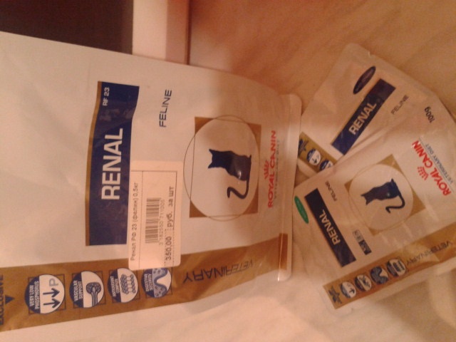 Я не очень то и рада...анализы смысла нет сдавать...а корм я и так ренал купила...там выше в посте фото и чек за него. Если хотите,то можно уточнить у врача в ЦВК...Мы долго говорили с ней...Персик даже 100гр. набрал...
