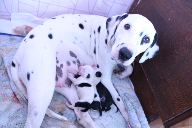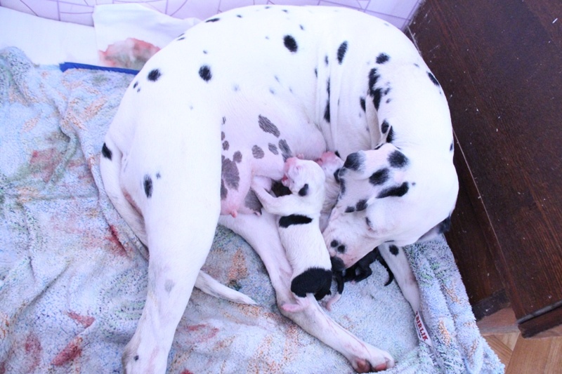 Сегодня собака начала рожать, первый щенок мертвый, пока в наличии 4 щенка.
