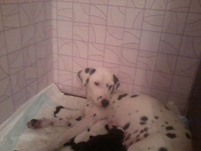 Нашла на улице беременную далматинку,родила она 7-х щенят(дворняги).У себя оставить не могу т.к. есть собака и две кошки к сожалению не могут ужиться, да площадь не позволяет.