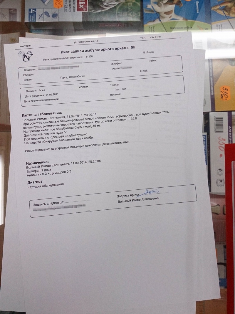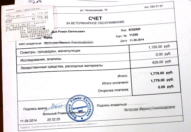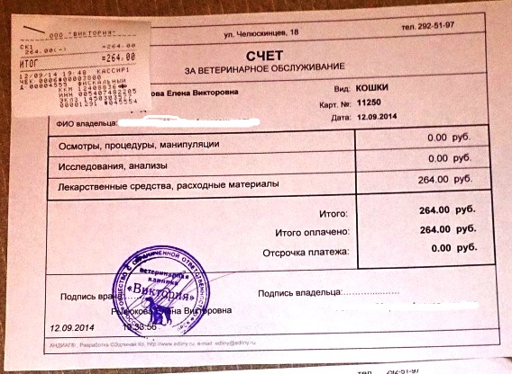 Прикладываю фото кота, результаты осмотра, чеки за лечение.