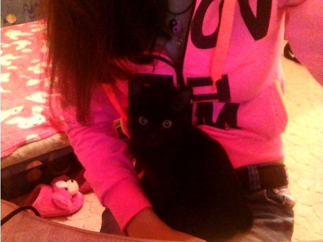 Отдыхали с подружкой на Горном Алтае,полезли в гору и в полузаброшенных гаражах нашли это маленькое ЧУДО.Её понемногу подкармливали люди,которые видимо там рядом живут или работают,мы тоже её покормили,там был пакетик с кормом,она была очень голодна.Посидели с ней,но нам нужно было ехать...На утро я не смогла оставить котёнка и мы поехали купили ей корм и молочко,думали покормим и оставим корм там,но просто так мы не смоли оставить ситуацию...В итоге решили забрать с собой чудесное создание.По дороге придумали имя,назвали в честь реки Горного Алтая МАЙМА.)
