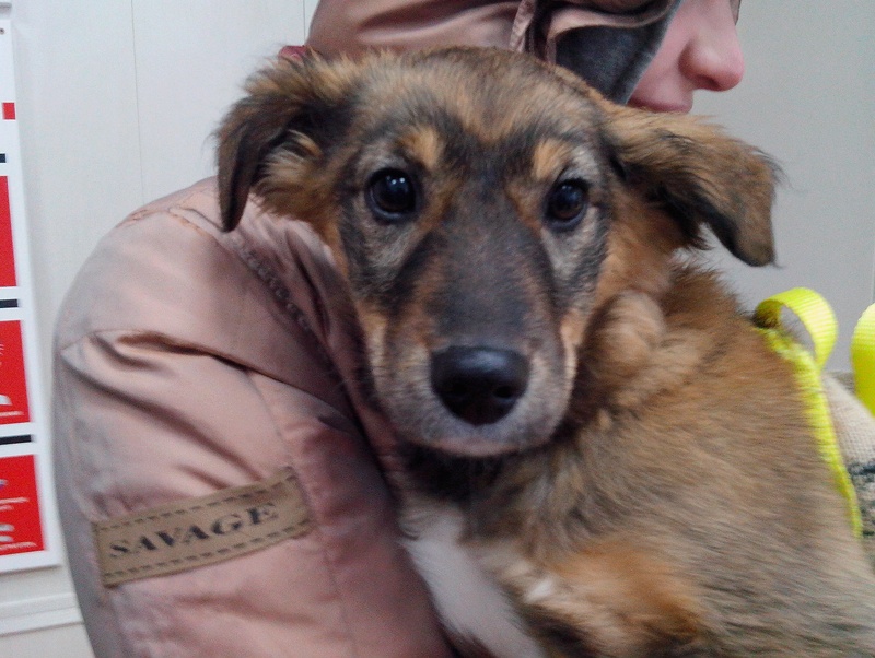 и взяла щенка себе до пристройства. Я предложила Даше быть только передержкой, но она пожелала самостоятельно курировать собаку.Для первичного осмотра я посоветовала им пойти в Евровет на Станиславского (а не на Титова, как изначально хотела Даша), и потом я убедилась, что не зря настояла на этом - Ириска заболела.