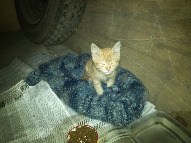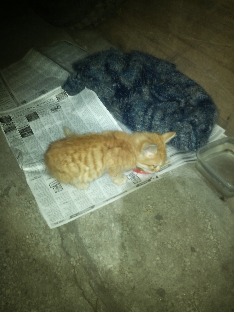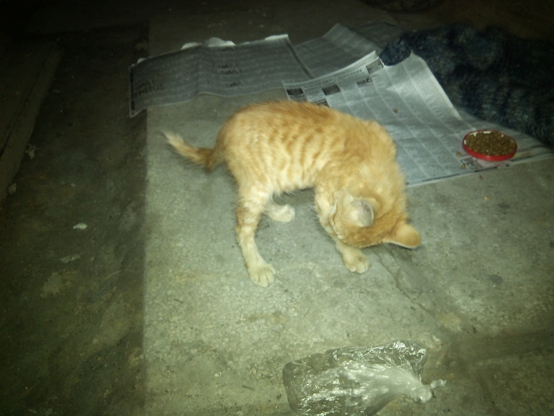 Чудесный маленький рыжик, видимо вышел к людям с надеждой что помогут, естессно все мимо проходили(((( Я смотрю - сердце кровью обливается, у самой дети, а тут котячий детеныш нуждается в помощи и практически помирает на глазах