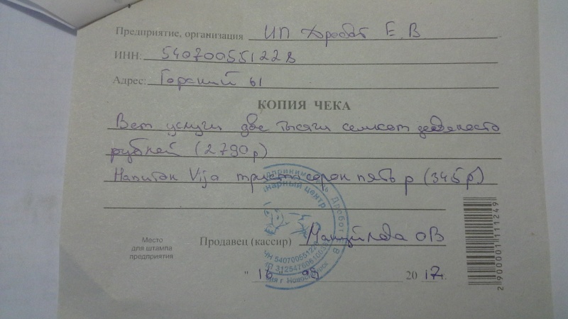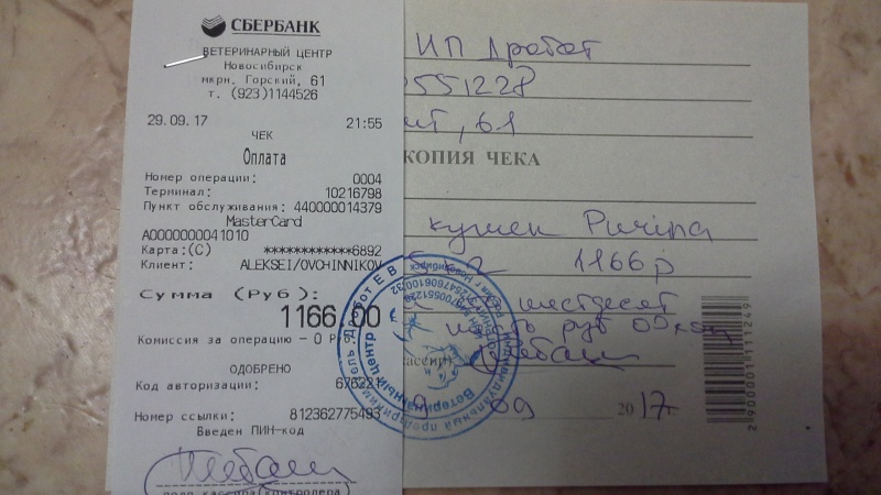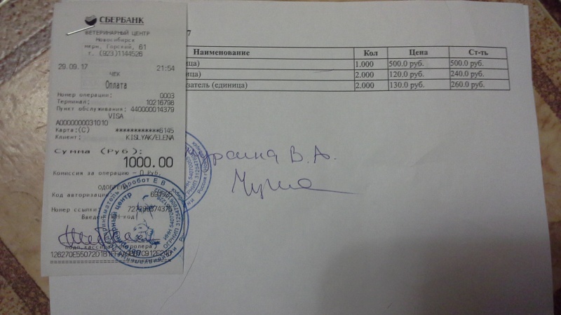 Расписка за передержку отправлена на электронную почту.