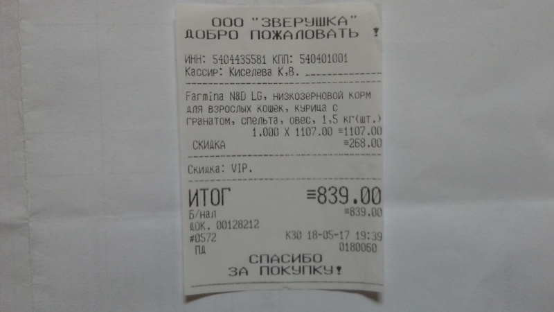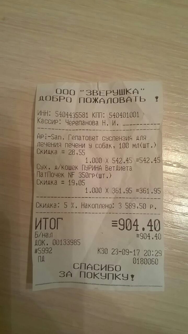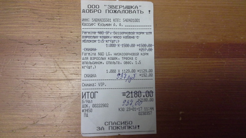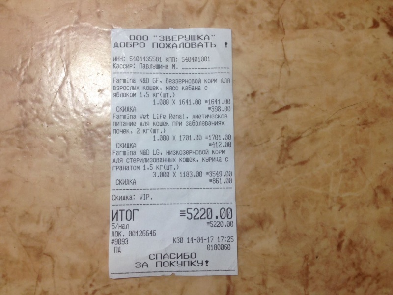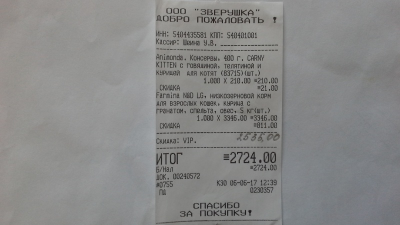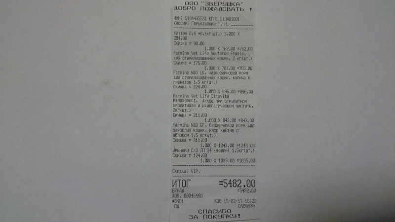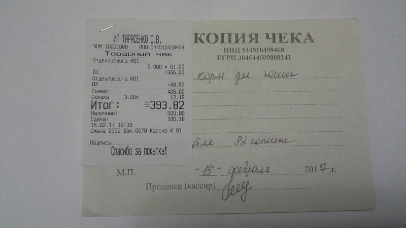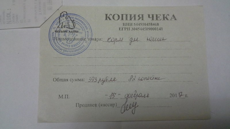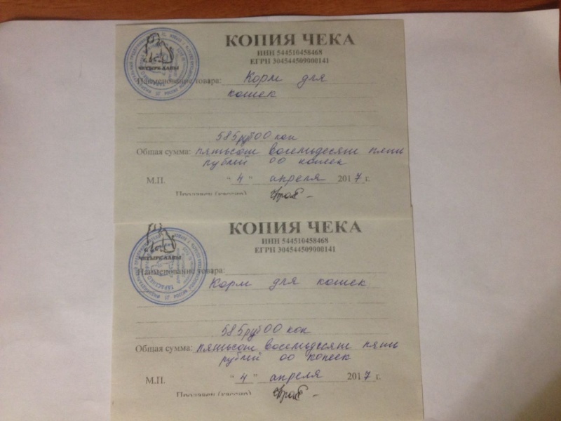 На всякий случай прикрепляю все четыре чека, подтверждающие покупку корма для кошек, чтобы не посчитали, что это чеки, которые я уже прикрепляла к отчету в другой своей теме.
