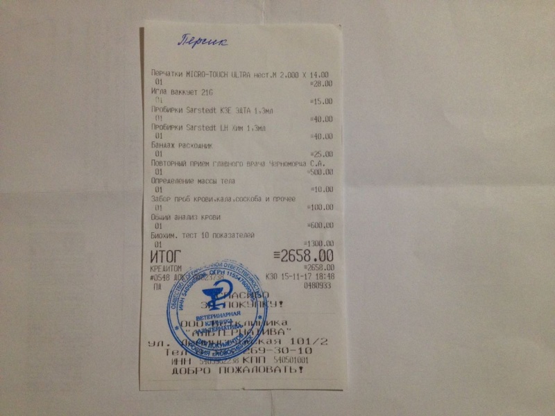 Мы с Персиком съездили на первичный прием, сдали кровушку. Диагноза пока нет, так как результат будет готов только через какое-то время. Как я поняла, анализ не далают в клинике, а увозят в лабораторию. Были в Интерре. Сегодня нам нужно попасть на повторный прием и исходя из результатов врач будет решать, что делать дальше. Возможно необходимо будет дообследование. Прошу финансовую помощь на повторный прием.