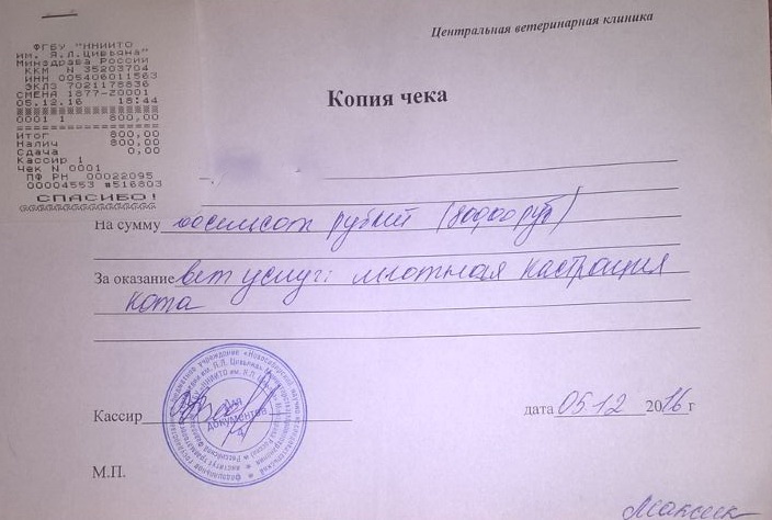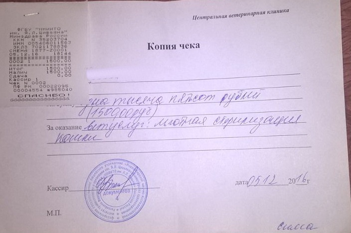 Уважаемые девочки проверяющие отчет, второпях и с кучей кошек, мы взяли чек и не отделили тему стерилизации от темы кошки перса Каси, надеемся на понимание и очень надеемся, что не доставили неудобств.