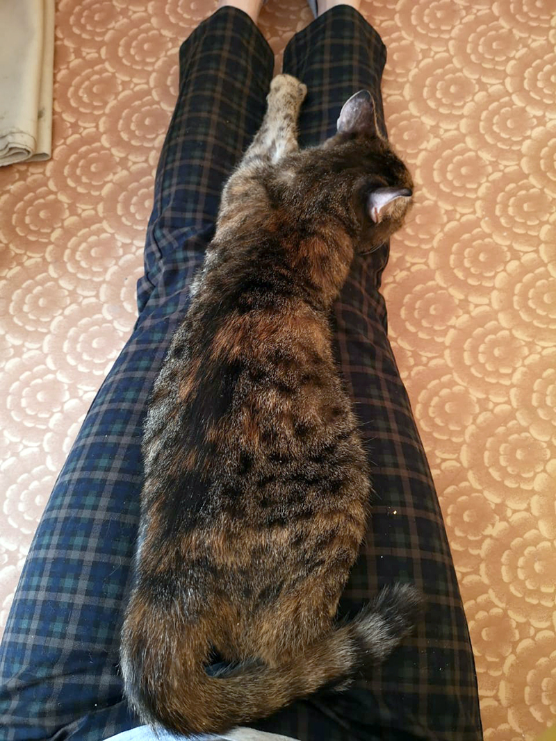 Из новостей. Переехала Анфиса на другую передержку, к кошкам,где Потапка, Фиксик. Сидела под диваном первые сутки, обнюхивалась, присматривалась. Потом стала потихоньку выползать, теперь живет на диване барыней, а остальные кошаки, где придется.