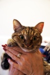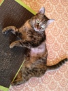 Анфиса очень красивая, не знаю, я влюбилась , кошка такая яркая, у нее столько вкраплений рыжего в шубке, глаза огромные и зеленые. Постоянно лезет на руки, ласкается, на Вику смотрит, как на Бога.