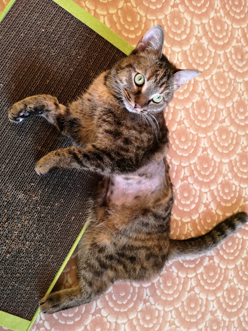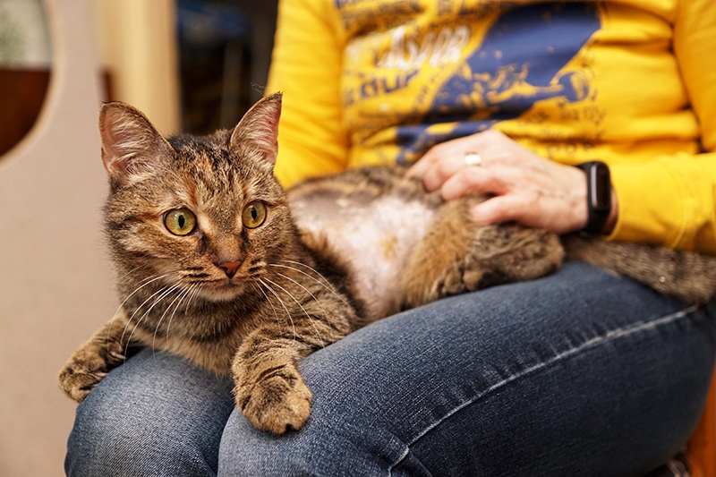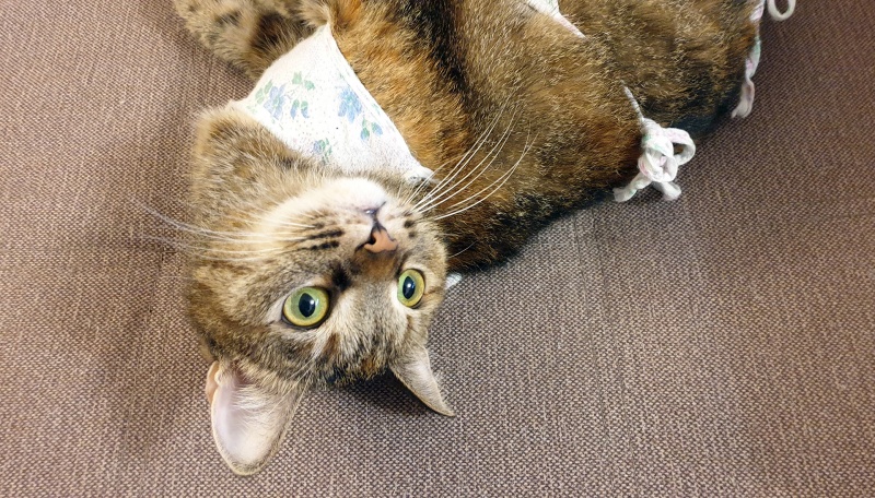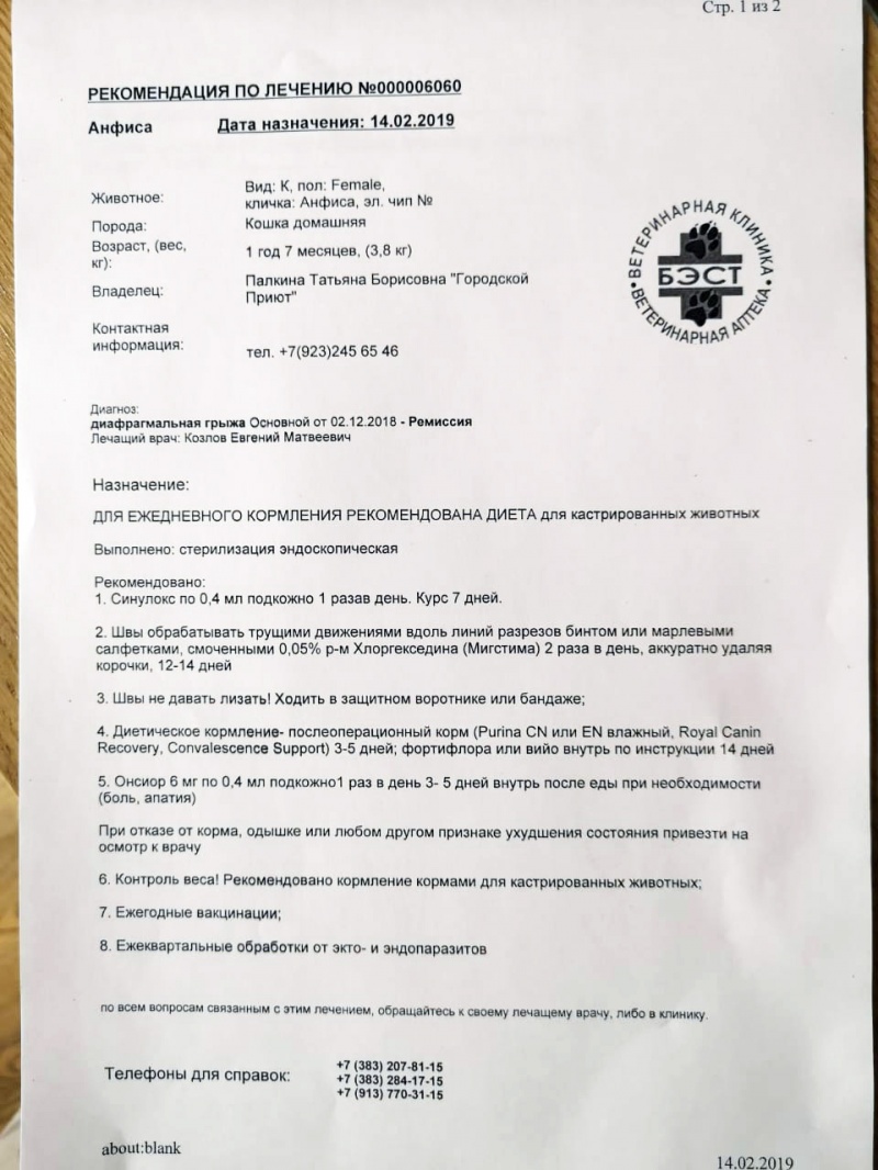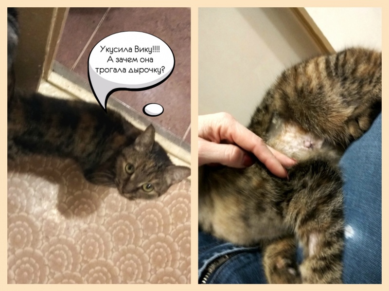 В четверг стерилизовали Анфису, делали лапараскопию. Очень переживали, потому что столкнулись с этим впервые, раньше кошек таким способом мы не стерилизовали. Выписали Анфисе антибиотик и обезболивающее.