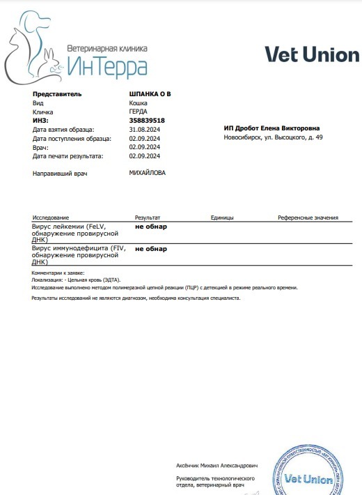 Записались с Масяней на Сб. на чистку анальных желез и цитологию их содержимого, и захватим котят, чтоб сделать тест на лейкоз пцр днк, в Интерре.