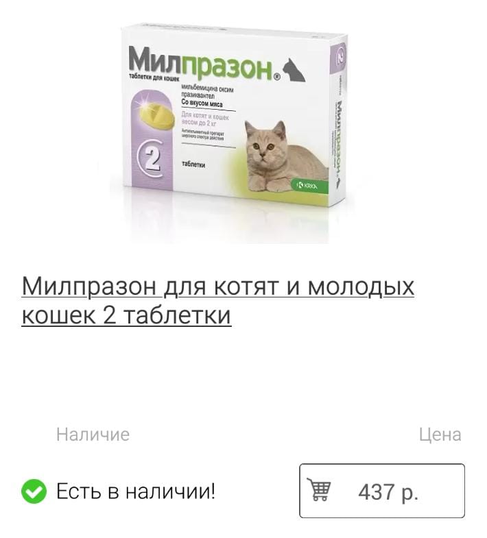 – Пинпрамиль для котят и мелких кошек, от 0.5 до 2кг (глистогоное), 2табл.– 266.00ք [чек№153]