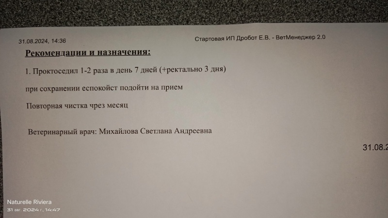 – Передержка Веснуши с 2024/08/15 по 2024/09/15 [расписка] – 2700.00ք (отправлена на единую почту otchet.ngs@inbox.ru).